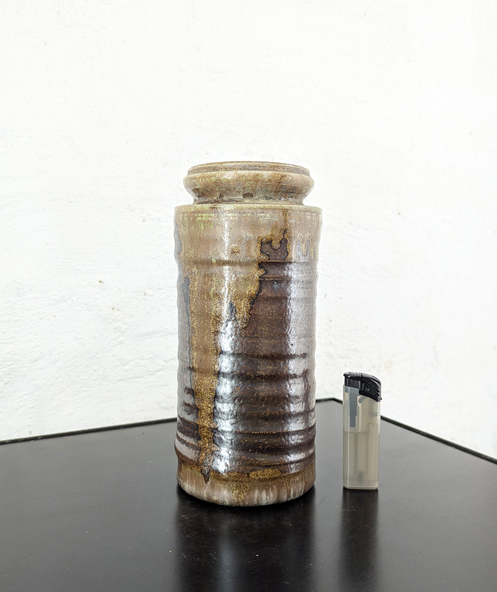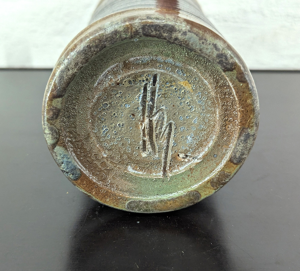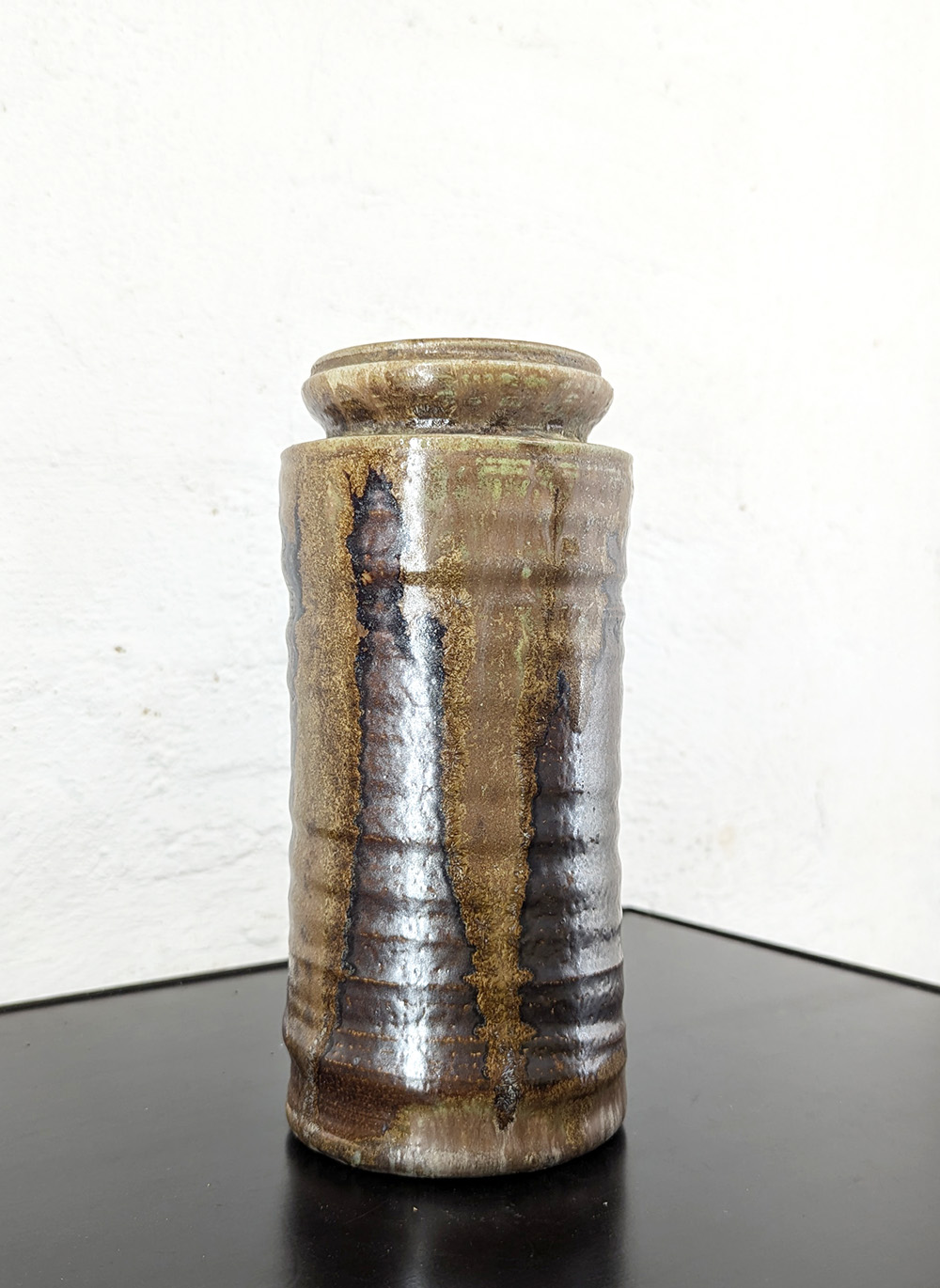 Keramikvase von Heiner Balzar aus Höhr-Grenzhausen. Preisträger Ehrenpreis Deutsche Keramik 2017. Grauer Steizeugton mit Überlaufglasur. Um die 1960/70er Jahre gefertigt. Am Boden signiert. Höhe ca. 23cm Guter Zustand. Keine Macken.