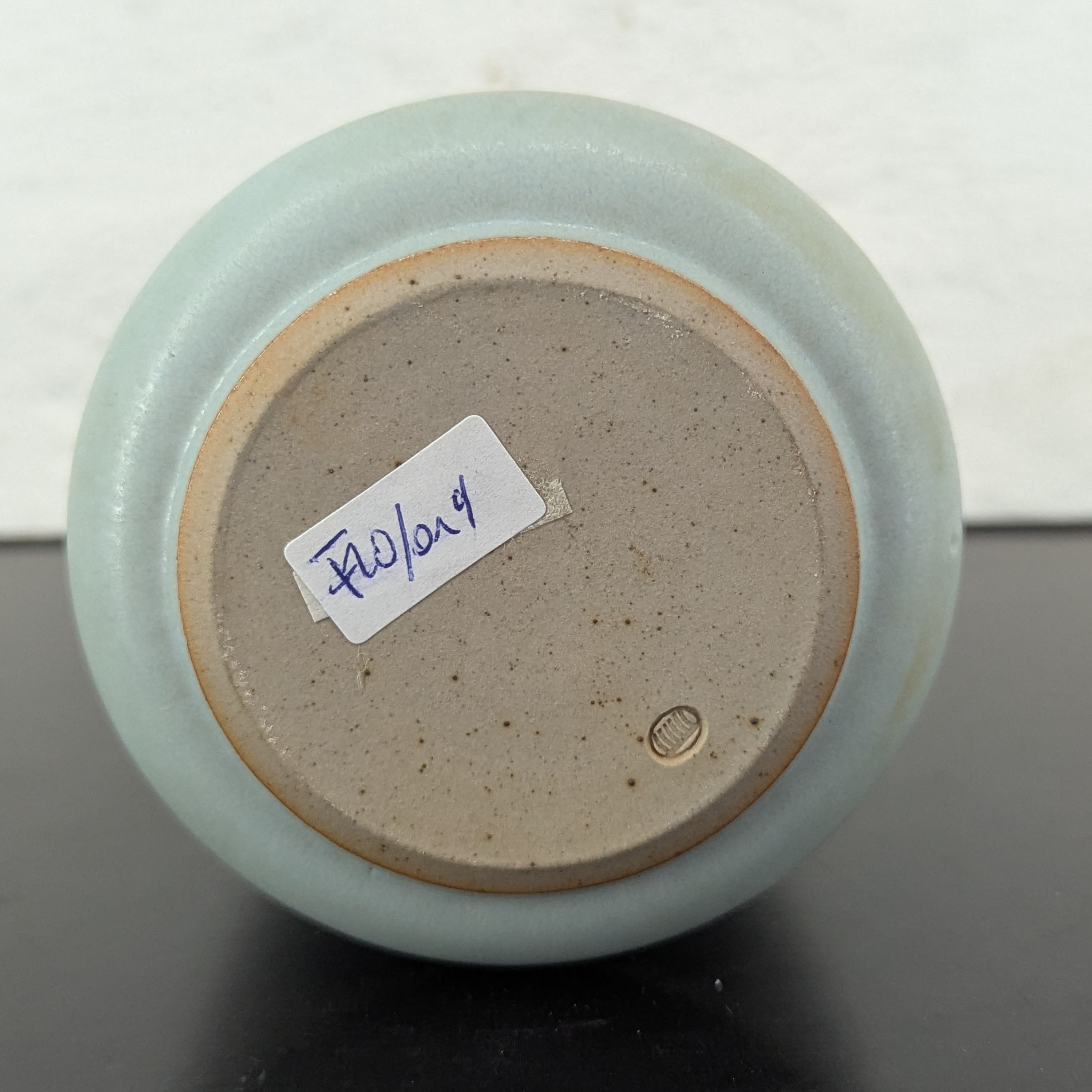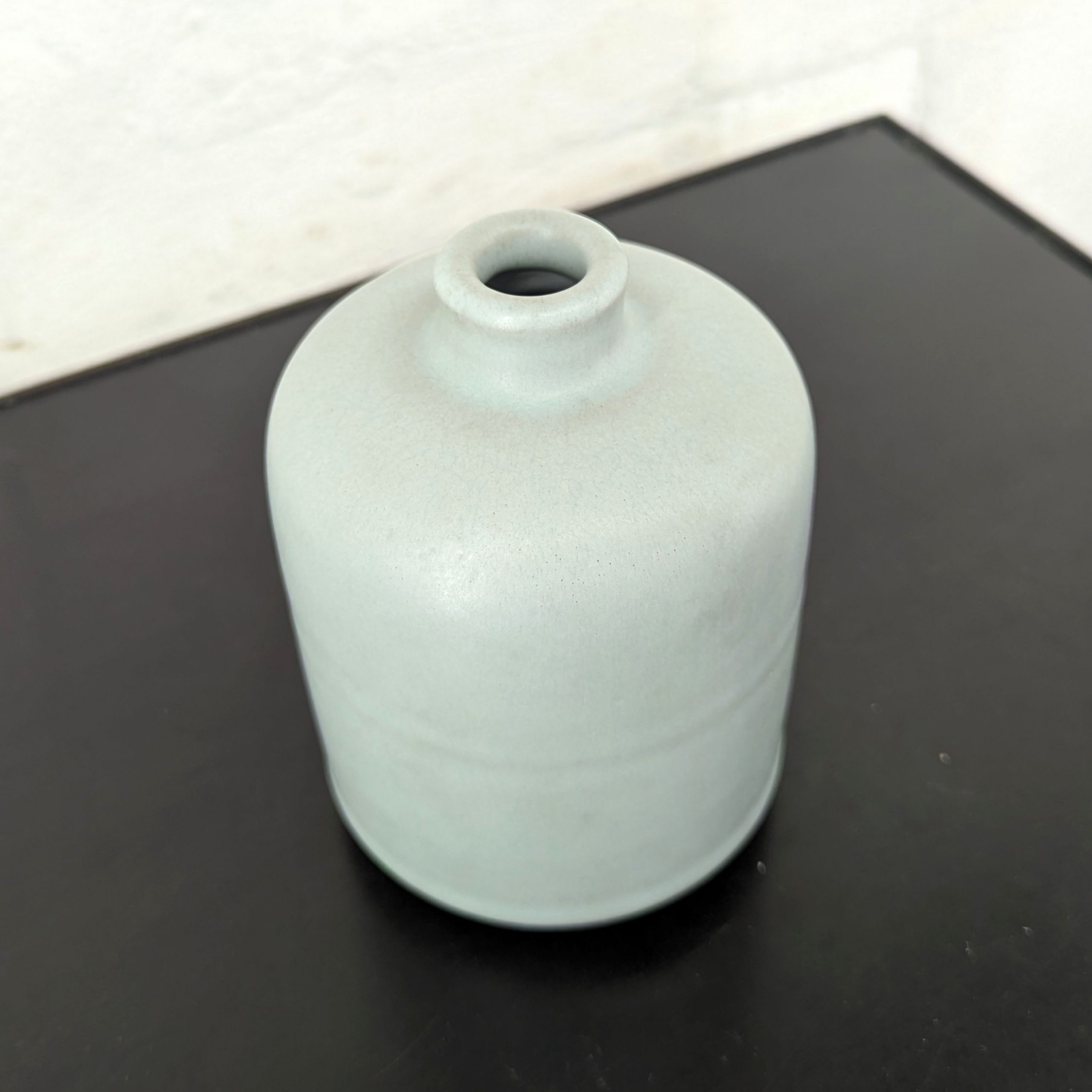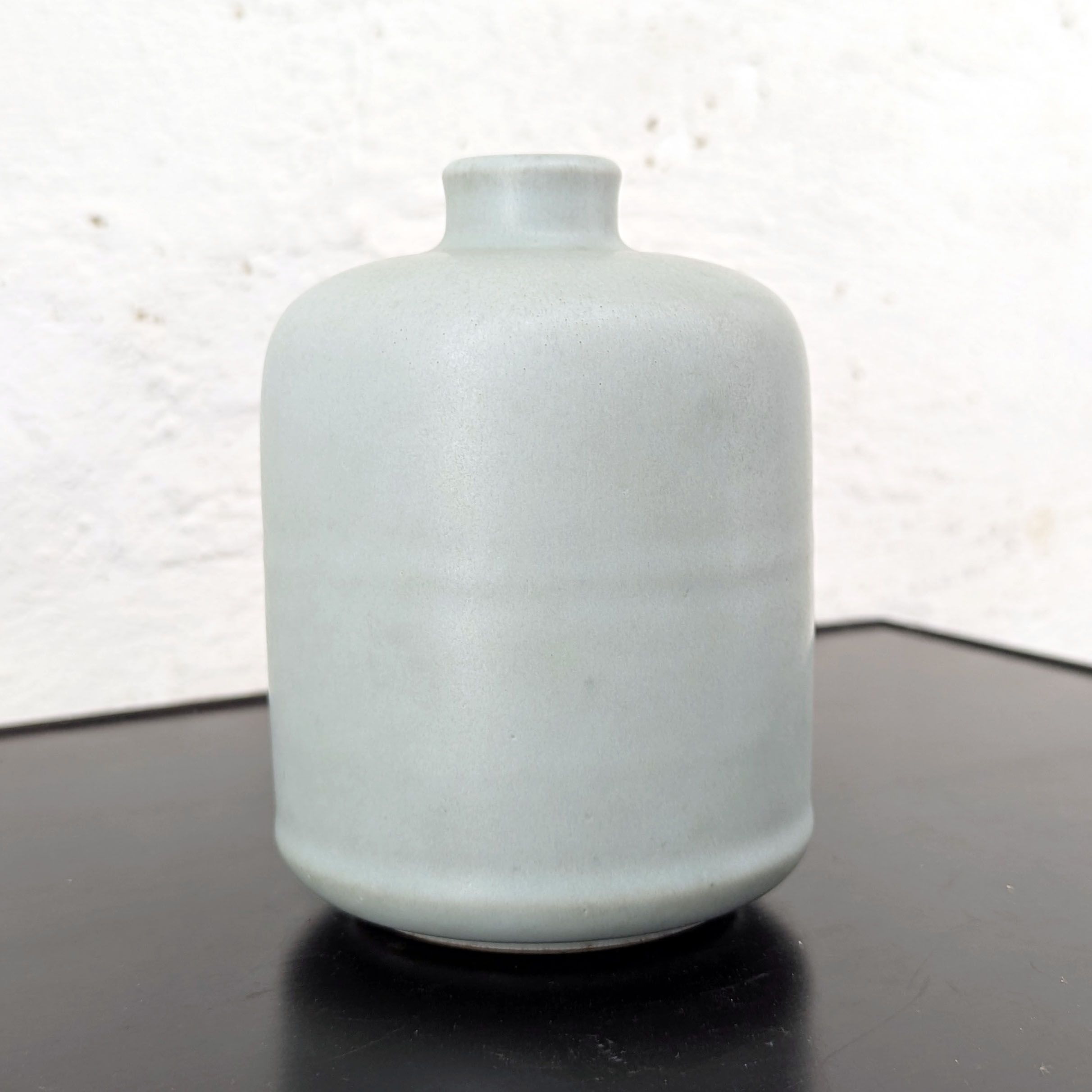 Flaschenförmige Keramikvase von Kap-Sun Hwang, Kellinghusen / Südkorea. Hergestellt um die 1990/2000er Jahre. Handgedrehte Vase mit seidenmatter Glasur. Am Boden gemarkt. Höhe ca. 13,5cm. Guter Zustand. Keine Macken. Bitte beachten Sie auch die Bilder.